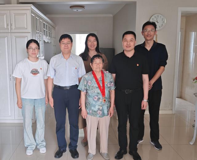 7月3日上午,商学院(质量学院)党委书记公维才一行五人代表学院上门看望慰问老党员张慧泽老师,代表组织为其颁发了“光荣在党50年”纪念章。