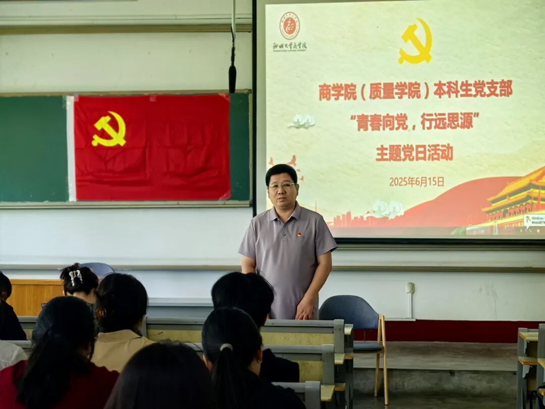 为深化毕业生党员党性教育,筑牢廉洁自律思想根基,6月15日,商学院(质量学院)于东校区1#301教室举办“青春向党 行远思源”毕业生党员主题党日活动。活动由学院团委书记刘玉华主持,党委副书记李树房及全体辅导员出席,全体毕业生党员参加。