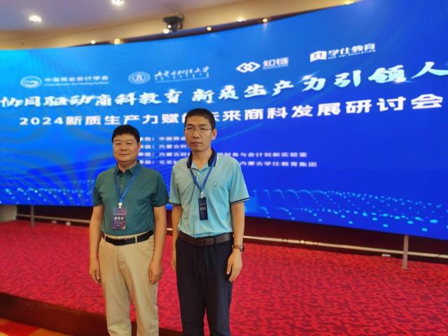 2024年7月20-21日,学院党委书记公维才、会计系主任张延辉参加了由内蒙古财经大学主办、北京知链科技有限公司协办的《2024新质生产力赋能未来商科发展研讨会》