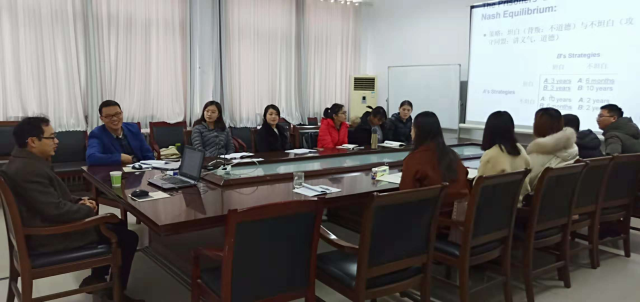 郭教授主要讲了《囚徒困境从其超越道德的博弈论分析》,郭教授报告主要讲了以下三点内容:一是劝告学生多读理论书籍和多阅读高层次文章,提高理论水平;二是经济学是一种思维方式,博弈论是与古典经济学和新古典经济学不同的一种思维方式,与在个人、企业约束条件下追求最优不同,博弈论需要在考虑别人和别的企业影响下选择策略实现最优;三是讲了纳什均衡含义以及打破囚徒困境的方法,多次博弈、冷酷策略和忍耐。报告过程中,我们学院研究生与郭教授进行了多方面交流,同时,郭教授也邀请我们学院研究生考取他的博士。