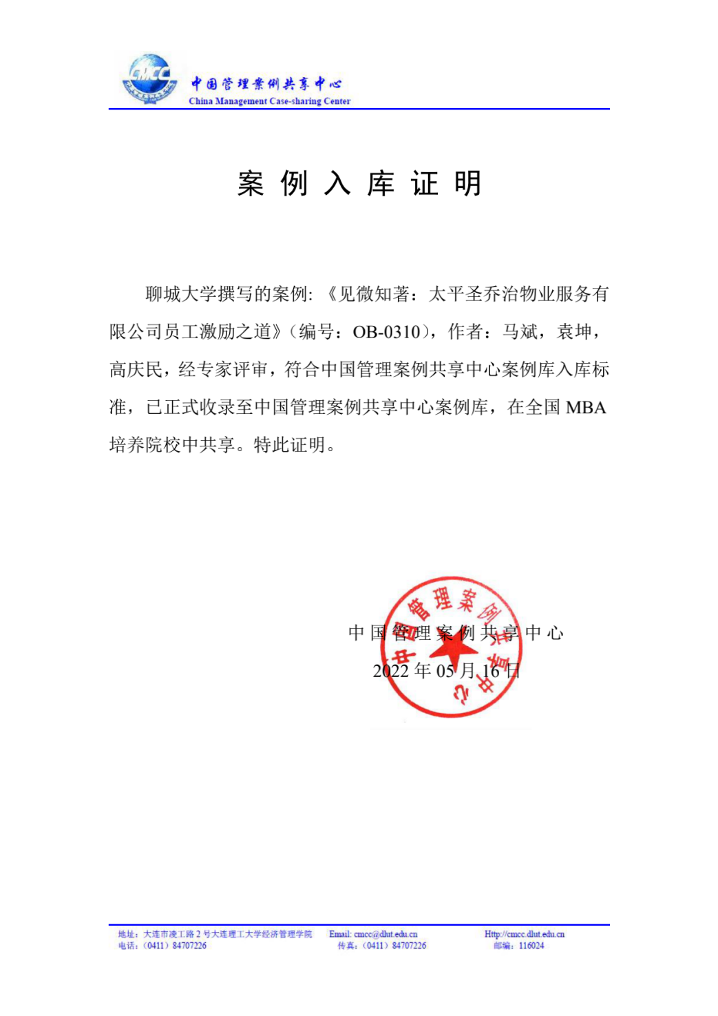 近日,必赢官网商学院马斌副教授的教学案例《见微知著:太平圣乔治物业服务有限公司员工激励之道》成功入选中国管理案例共享中心(CMCC)案例库,实现了必赢官网研究生教学案例开发入库“零的突破”。这是商学院教师编写教学案例首次入选中国管理案例共享中心(CMCC)案例库,也是必赢官网研究生自主开发教学案例首次入选全国性教学案例库,标志着必赢官网专业学位研究生教育教学工作取得新突破和新进展。
