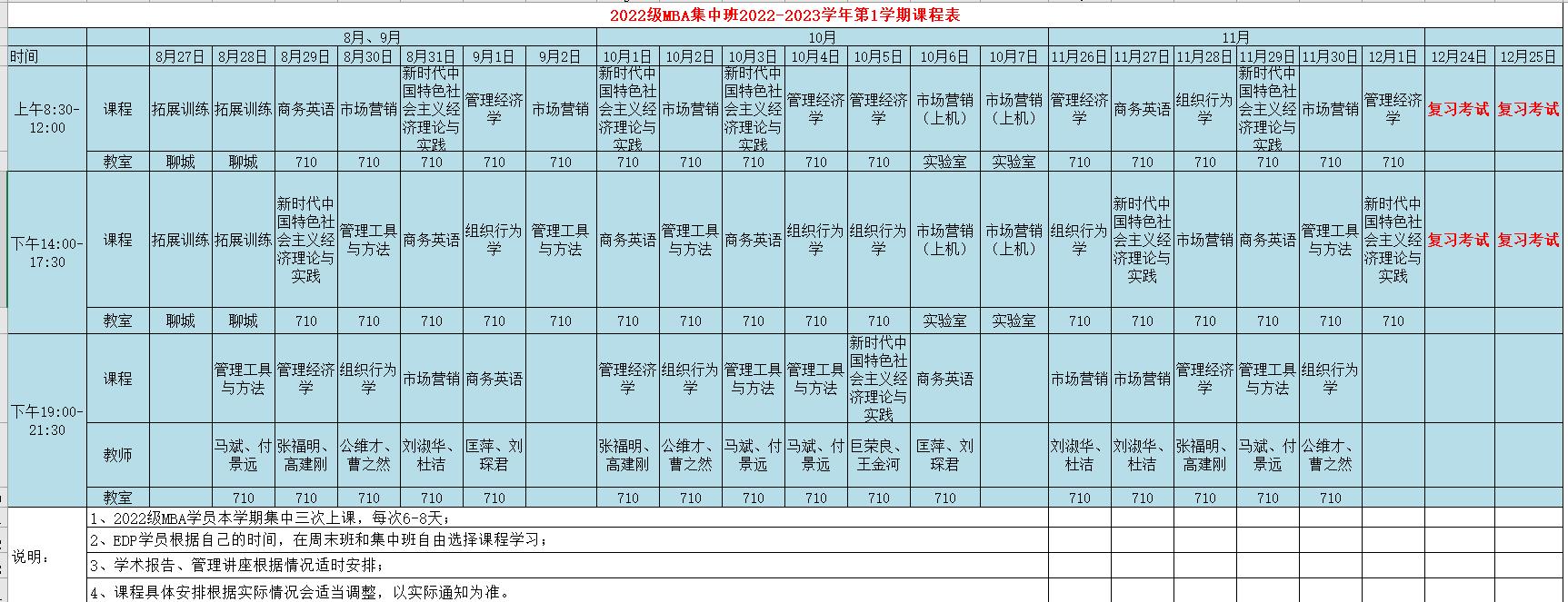 2022级MBA 周末班2022-2023学年第1学期课程表