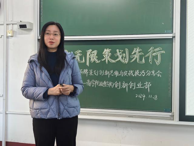 为激发大学生创新思维,提升市场分析、品牌构建和策略规划能力,11月28日,商学院(质量学院)于东校区1#109开展“创意无限 策划先行”品牌策划创新思维与实战技巧分享会,学院副教授刘淑华应邀出席并担任主讲人。
