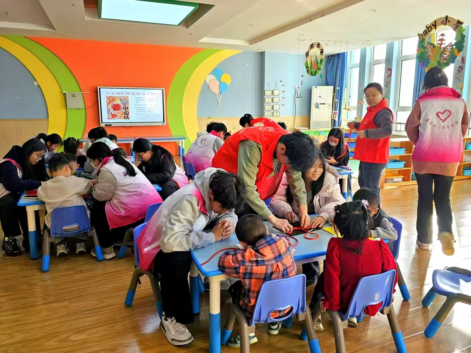 志愿者通过生动活泼的交流互动迅速拉近了与小朋友们的距离,并在此基础上为小朋友们带来了一场深刻的爱国主义宣讲,通过讲述革命先烈的英勇事迹、展示祖国的大好山河以及介绍国家的发展成就,有效激发了小朋友们对祖国的热爱与自豪。同时,为了强化小朋友们的爱国意识,志愿者还耐心地指导小朋友们学习并制作了中国传统文化瑰宝——中国结,并透过平结、盘长结等制作步骤,向小朋友们阐释了中国结吉祥如意、团结和谐的寓意,及其承载的中国人民深厚的爱国主义情怀。在志愿者的指导帮助下,小朋友们学得津津有味,他们稚嫩的小手在红绳间来回穿梭,一个个精美的中国结逐渐成型,其中不仅蕴含着小朋友们对中华优秀传统文化的热爱,更寄托着少年儿童爱国主义精神的传承。