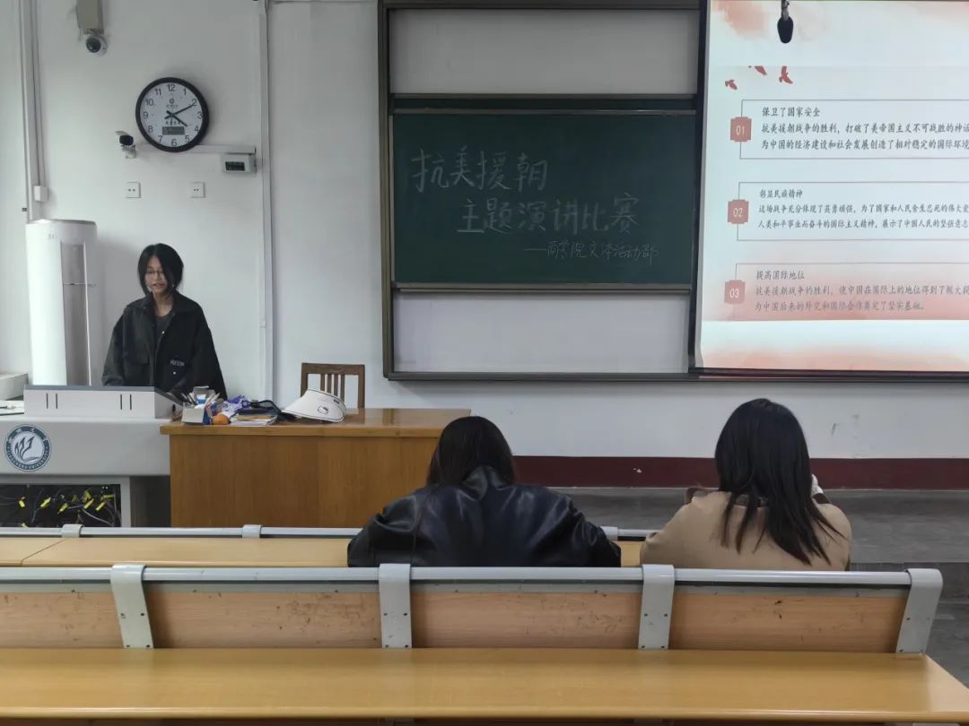 为致敬保家卫国的英雄前辈,激发青年学生爱国主义热情,10月20日,商学院(质量学院)于东校区1#205举办“抗美援朝英雄志 演讲颂歌扬英魂”演讲比赛,文体活动部部分成员担任评委。