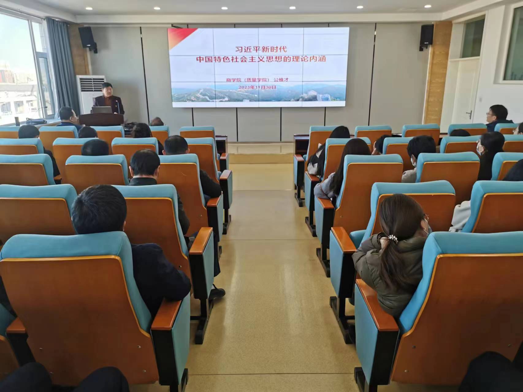 11月30日,商学院(质量学院)在东校区1#707开展了“党委书记讲党课”暨教职工政治理论学习活动,党委书记公维才讲授了《习近平新时代中国特色社会主义思想的理论内涵》专题党课,学院全体教职工参加。党课主要围绕习近平新时代中国特色社会主义思想是如何创立的,其主要内容有哪些,其历史地位如何等三方面展开。