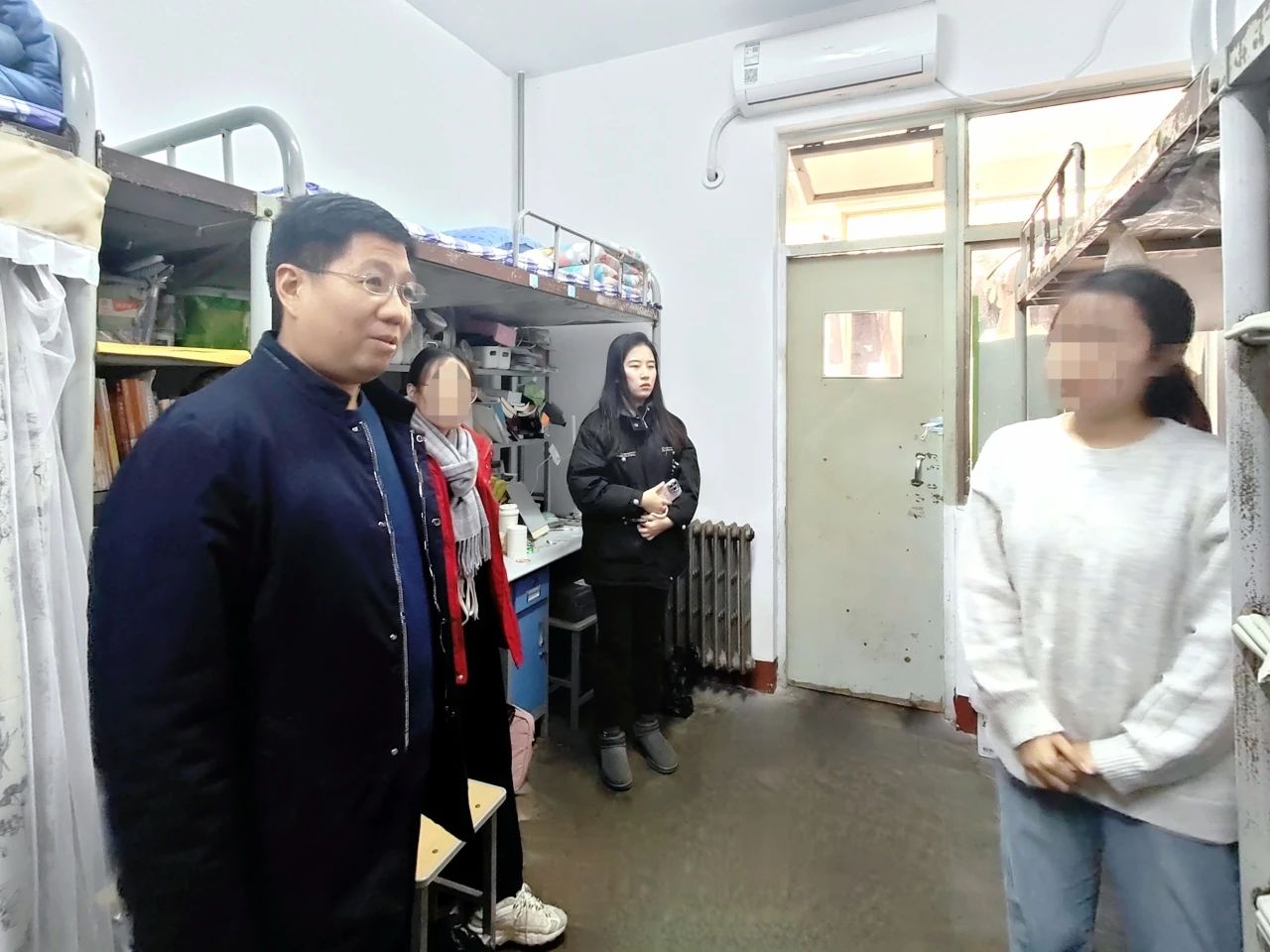 在走访过程中,刘玉华一行人采取精准走访的方式,深入各学生宿舍,与学生亲切交流,耐心询问了他们在学业和生活中遇到的困难与烦恼。对于学生因经济压力产生的焦虑,刘玉华详细阐释了学校的各类奖助学金政策、勤工俭学岗位等各项资助政策,确保每一位有需要的学生都充分了解相关福利与申请途径。