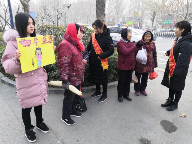 新春合家欢,佳节大献礼。过年买年货是中国的传统习俗,正如人民常说的“过了腊八就是年”,腊八过去后很多人开始买年货,准备一个喜庆团圆的年。队员们向市民们了解到,年货要准备很多物品;一要有零食小吃,二要有水果,这些都是过年没事亲人朋友一起闲聊的必须品,三米面要备足,过年要做年糕面食,四青菜、肉和美酒不可少,过年要有不少亲戚朋友的聚餐,五新年新气象要有新衣服,六最后不能少年画。在活动过程中,队员们向市民学习了买年货的一些小技巧,例如怎样买新鲜肉、什么样的年画不可少、新衣服要有红色才喜庆等;市民们表示过年买年货其实也是一笔不小的开销,但都是为了能有个喜庆团圆的年,劳动了一年过年买年货也是为了奖励下自己,并鼓励自己下年更努力。