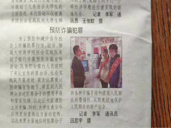 为了预防和减少当今社会上银行诈骗犯罪行为,近日,必赢bwin线路检测中心社会实践队来到了中国工商银行开展预防诈骗宣传活动。队员们向银行工作人员说明了来此宣传的原由后,工作人员积极配合社会实践队的活动。双方认真商讨防诈骗宣传细节,并且向人民群众讲述犯罪分子的惯用手段和常见伎俩,以此谨防大家上当受骗。同时,工作人员表示今后将更加重视这方面的宣传问题,以此来更全面的应对犯罪分子的各种诈骗手段和提高人民群众的警惕性,从而更好的保护人民群众的财产安全。(通讯员田思宇)