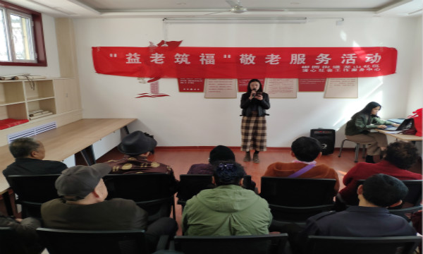 扶老养老传家久,尊老敬老世泽长。进社区文艺演出是一座城市的名片,既展现一座城市的整体素质和面貌,更关系着市民的身心健康。为传承尊老敬老爱老精神,3月21日商学院小雏菊青年志愿者协会的志愿者来到龙山社区以文艺表演形式为老人送去春日的温暖。