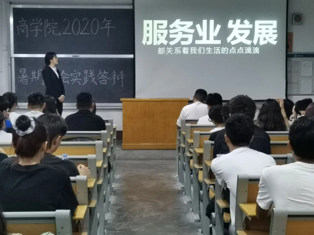 为了拓宽学生的视野,锻炼学生的意志,商学校在暑期组织了一些社会实践活动,9月6日,商学院在东校区1#309对活动进行总结,举办了“2020年暑期社会实践答辩”活动。 答辩的评委阵容为商学院学生会、社联部长及主席团成员,出席大会的为各社会实践队队员及19级班团等。