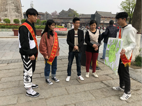 每年的4月22日,是一个专为世界环境保护而设立的节日——世界地球日,为提高同学们对于现有环境问题的意识,动员群众参与到环保运动中。近日,必赢bwin线路检测中心社会实践队来到千年古城举行“我爱绿色地球”宣传教育活动。