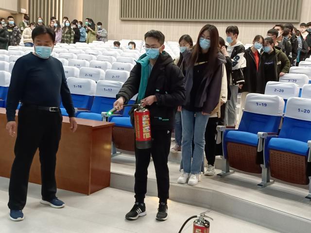 消防事关千万家,平安和谐靠大家。活动开始前,学院相关负责人提醒同学们遵守活动流程,爱惜消防设备,认真听讲,注意安全,严防安全事故发生。活动开始后,主持人从火灾发生类型、灭火器分类及适用范围、常见灭火器的使用方法三方面为大家讲解了消防安全知识。通过主持人的介绍,同学们了解到火灾包括A到F六种类型,每种类型的灭火方法是有所不同的,作为最常被使用的干粉灭火器可以扑灭A、B、C、E四种类型的火灾。