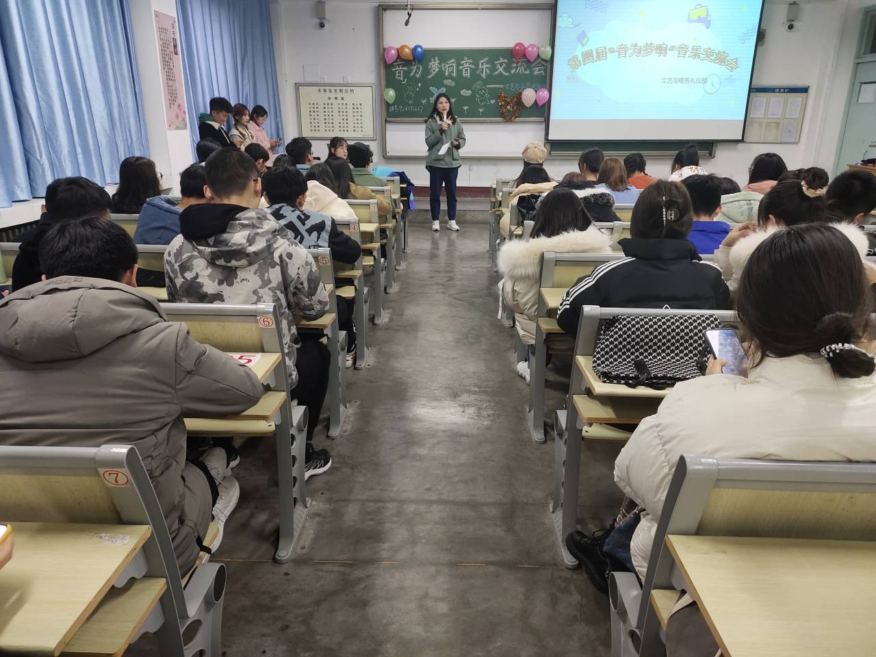 11月28日,1#301教室传来优美动听的歌声,商学院第三届“音为梦响”音乐交流会活动在这里举行,以便减轻同学们期中阶段的学习压力,营造一个轻松的学习氛围和环境,提高学习质量和效率。