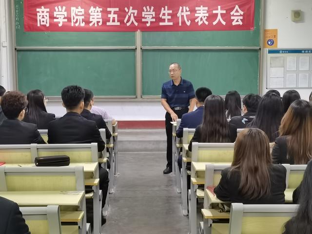 9月28日,商学院第五次学生代表大会在东校区1#302隆重召开。学院全体辅导员、校学生会嘉宾和100余名学生代表参加大会。