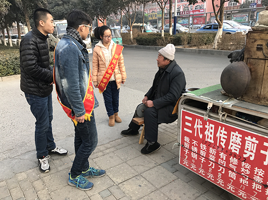 小时候磨剪刀戗菜刀的手艺人时常出现在市民的日常生活中,那拖着长音的吆喝声印在人们脑海里,然而随着人们生活水平的提高,鲜有人再去找人磨刀了。钝了就买新的,省事省时间,这暴露出了当今人的浮躁。而这正是科技进步,生产力大幅度上升的产物。在这个纷杂社会中快节奏的生活,强烈追求物质的欲望,让人心不得不变得浮躁起来。在与老人的交谈中,队员们了解到老人今年65岁,已经从事这个行当30多年。他磨的刀子锋利无比,就是三十年练就的功夫。老人跟队员们说,已经没有多少愿意从事这个磨刀行当了,如今干这个行当的都是年轻时就开始从事这个行业的人。通过这次活动,大家对工匠精神有了更深的感悟。虽然社会不断在快速发展前进,但依然有一批匠人们为我们保留着那份执着与传承的精神。这更坚定了队员们弘扬工匠精神的信念。