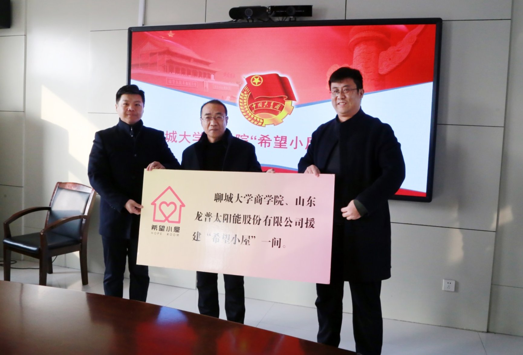 1月22日上午,由商学院和山东龙普太阳能股份有限公司援建的“希望小屋”项目捐赠仪式在东昌府区斗虎屯镇政府举行。必赢bwin线路检测中心党总支副书记李树房、共青团东昌府区团委书记杨晓、山东龙普太阳能股份有限公司董事长王树、副总经理杨青龙、斗虎屯镇党委副书记杨博和商学院团委书记岳增刚参加捐赠仪式,仪式由斗虎屯团委书记袁文举主持。