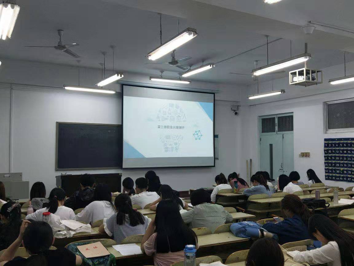 讲座内容共分为四部分。分别为:介绍霍兰德职业测试;引导同学们正确对待测试结果;正确认识自我,正确看待所学专业;适应社会环境的变化。