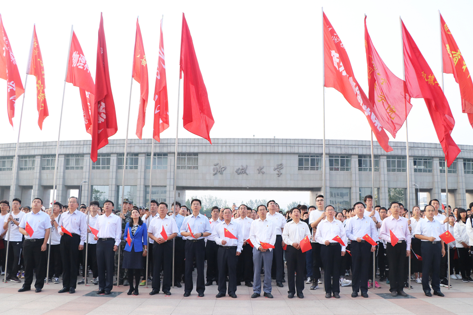 2019年9月30日早上,必赢bwin线路检测中心承办的“坚守初心使命 致敬伟大祖国”特别主题党日活动——庆祝新中国成立70周年主题升国旗仪式于西校区十一广场举行,校党委常委班子成员、省委“不忘初心、牢记使命”主题教育第七巡回指导组同志、机关党总支党员干部、学团干部代表、商学院团委代表、学生党员代表、学生组织代表、各学院学生代表共计近2000名师生参加活动。