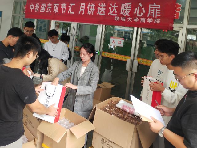 金秋送爽,丹桂飘香。在中秋节与国庆节一齐到来之际,为了关怀与照顾学院学生,10月1日,商学院组织开展了“中秋国庆双节汇 月饼送达暖心扉”活动,为学生们送去了中秋的月饼与节日的祝福。