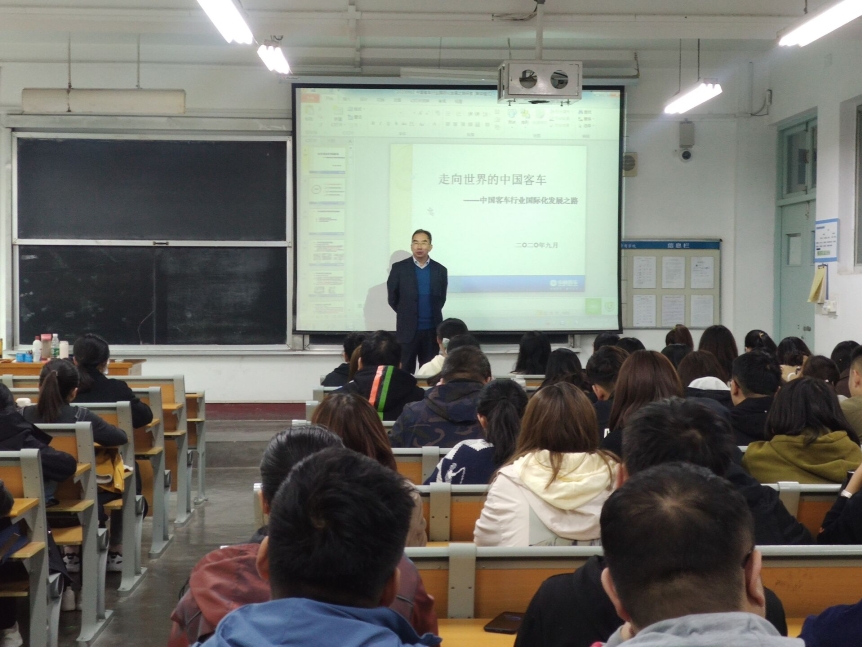 10月29日,必赢bwin线路检测中心举办商苑论坛之“走向世界的中通客车”,中通汽车集团责任有限公司副总经理于春印做客论坛,应邀为学生做专题报告。