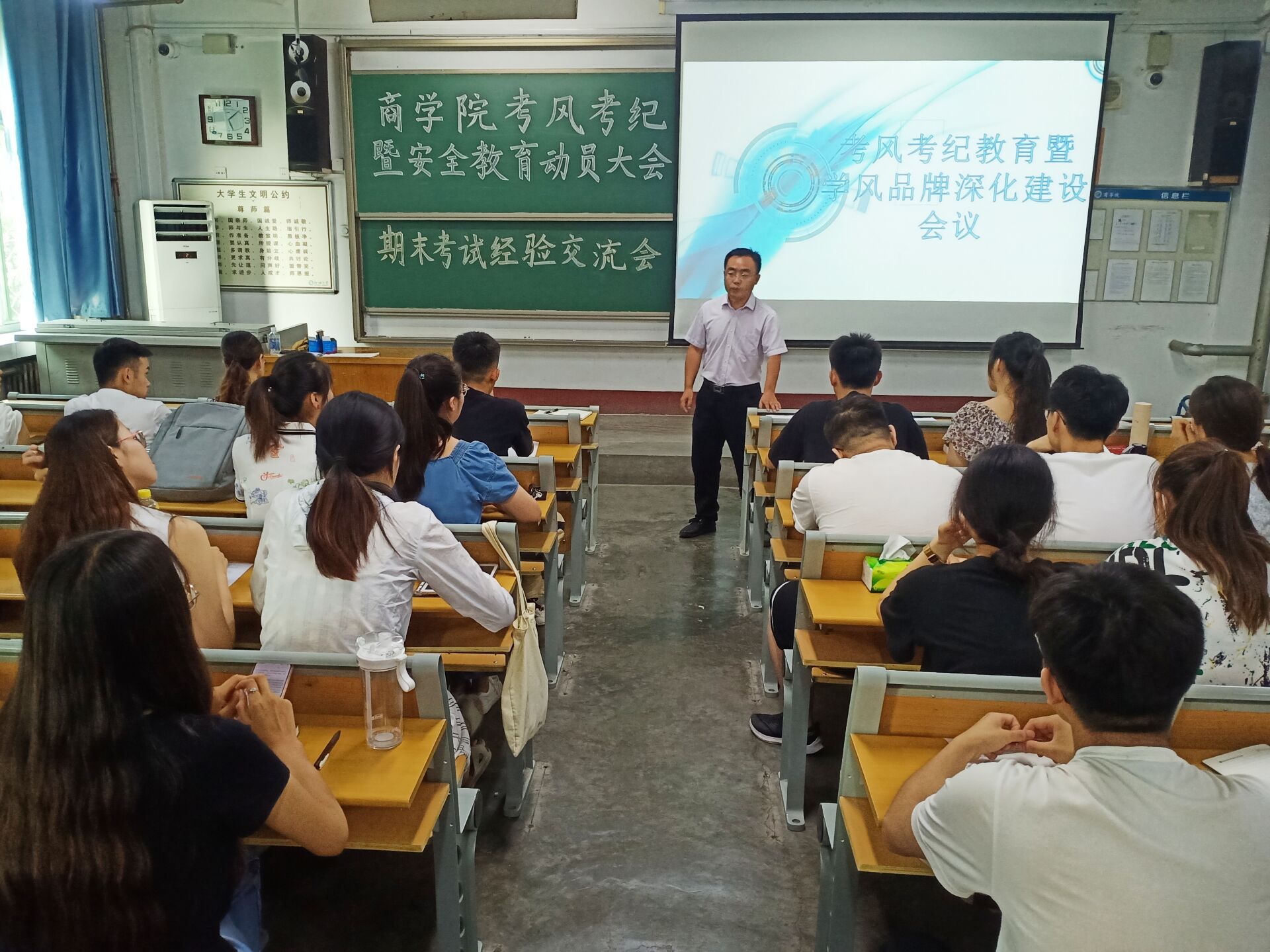 为了端正考风考纪,让同学们以良好的心态去迎接期末考试,同时加强学校安全教育和管理,增强大学生的自我保护意识和自我保护能力,6月24日,商学院于1#105举办考风考纪考试经验交流暨安全教育大会,团委书记岳增刚和辅导员焦艳芳出席本次活动。