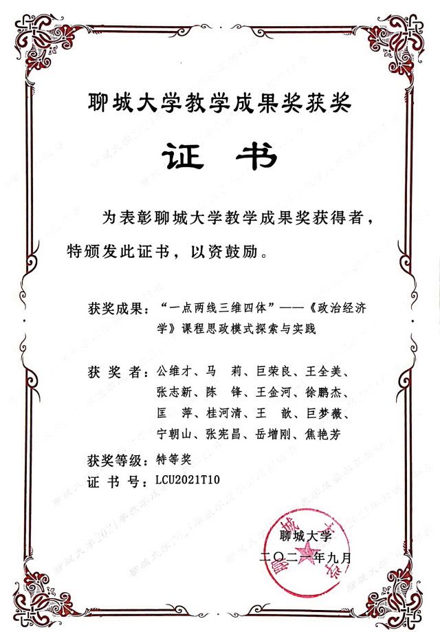 该成果是必赢bwin线路检测中心、山东理工大学、青岛大学合作的结果,具有鲜明创新性:以“一观二主三度”铸学习之魂(唯物史观,主体和主义,温度、广度和深度),以“三维”视角挖掘课程思政案例和思政元素,以“四体”创新教学方法。通过实施课程思政,使学生增强了社会责任感、树立了诚信和团队意识、明确了职业生涯规划、提高了学业成绩。同时,该成果还对学院其他教学团队和学生,以及合作学校同类课程起到了辐射作用。