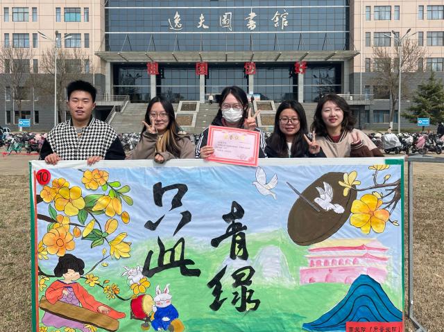 为丰富校园文化生活,加强校园精神文明建设,3月18号,商学院(质量学院)于必赢bwin线路检测中心东校区逸夫图书馆前参加“华夏展姿擎春意,齐聚聊大赴远航”主题展板大赛。