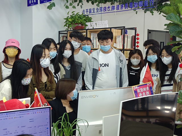 此次参观学习主要分为多楼层参观和交流会两个部分。在第一部分中,同学们在赵云新总经理的带领下了解到,该园区有多家公司入驻,可提供招聘、培训、管理咨询等多项服务,为聊城市经济发展搭建就业供需服务平台、人才创业就业发展平台和政府政策宣导服务平台。接着,师生们参观了该产业园区为企业人才招聘专门设置的招聘展位,以及该园区的网络直播间。同学们不仅对专业的直播器材感到惊奇,还因为网络直播的多样形式而大开眼界,比如直播招商、直播公益、直播路演等。之后,同学们还参观了智联招聘员工们真实的工作情况,员工们也积极为同学们解答疑问。