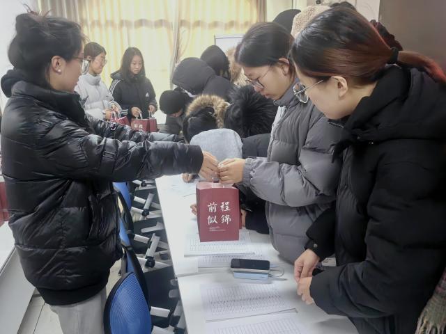 考研送暖,行以致远。学院为考研同学精心准备了一个个“考研福袋”,以学习用具、旺仔牛奶和寓意“成功”的橙子等作为助力小礼包,在2024届考研同学进入紧张的冲刺阶段之际,为考研同学送上关心关爱与加油鼓励,祝愿各位考研同学都能够心想事“橙”、运气“旺旺”、“巧”克难题。此外,大一学生们还为即将考研的学长学姐写下鼓励和祝福语,希望学长学姐们考研顺利,成功上岸。活动现场暖意融融,考研学子们纷纷表示,这个礼物不仅仅是一份物质上的关怀,更是一份精神上的鼓励。他们将带着这份关怀与鼓励,更加勇敢地奔赴考研之路,为自己的梦想而努力拼搏。