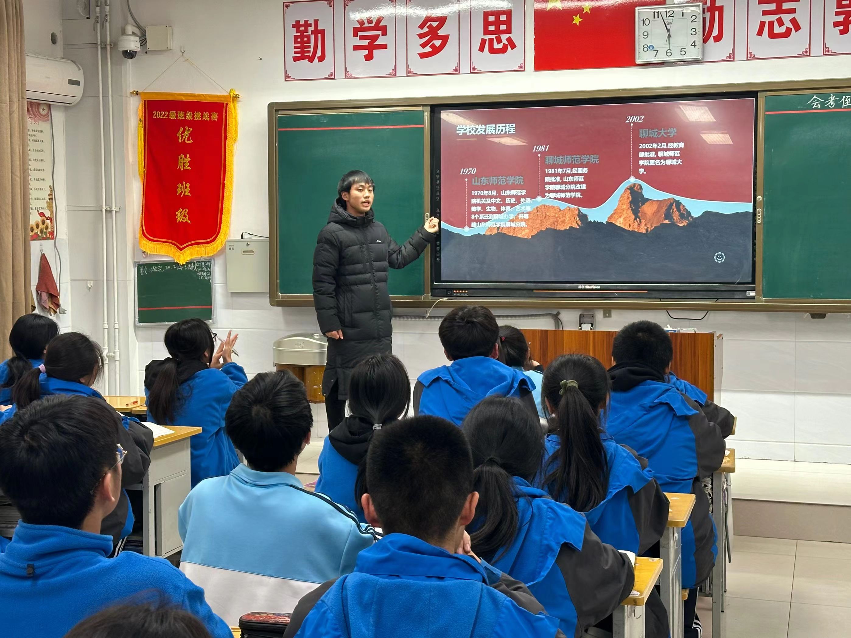 做聊大学子,为聊大代言。为展现聊大学子青春风范,提高必赢bwin线路检测中心的知名度,丰富聊大学子的寒假生活经历,近日,必赢bwin线路检测中心(质量学院)薪火传递队队员们来到母校聊城市第二中学开展了以“我为聊大代言”为主题的寒假社会实践活动。