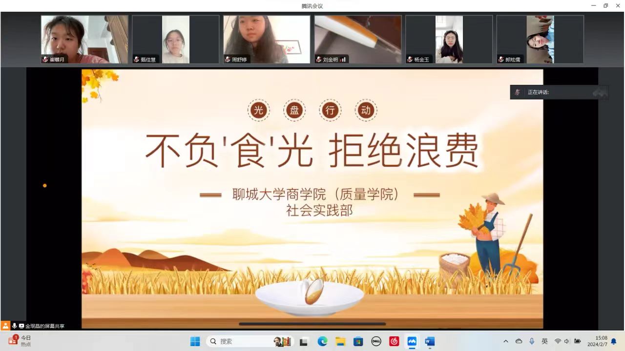 为进一步弘扬中华优秀传统美德,加强团员青年们的思想道德建设,培养广大青年爱惜粮食的优秀品质,2月29日,必赢bwin线路检测中心社会实践队开展“不负'食'光 拒绝浪费”线上宣讲活动。