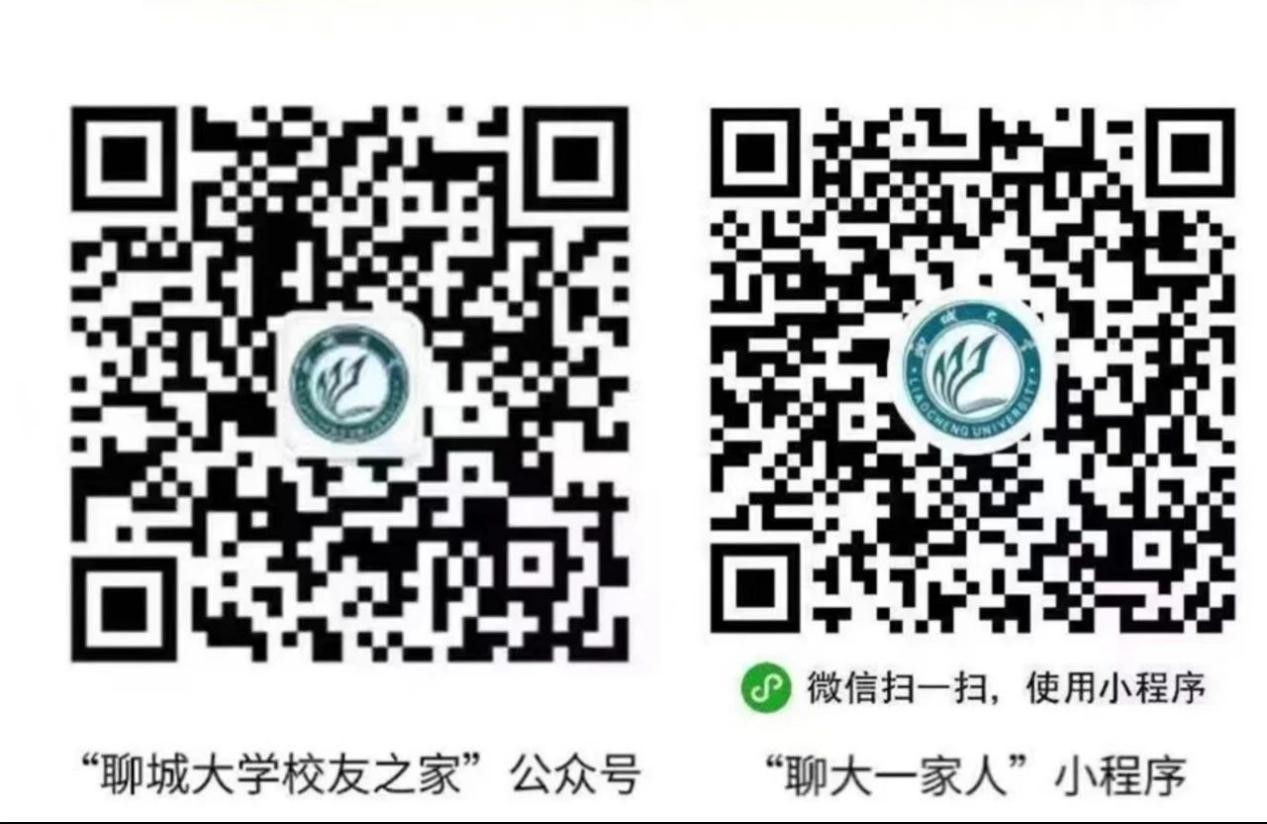 1.在微信小程序界面搜索“聊大一家人”或直接扫描下方二维码,点击首页“校友注册”完成校友认证(个人信息填写齐全,校友卡审核较快),然后申领电子校友卡(需上传个人规范的近期1寸证件照)。