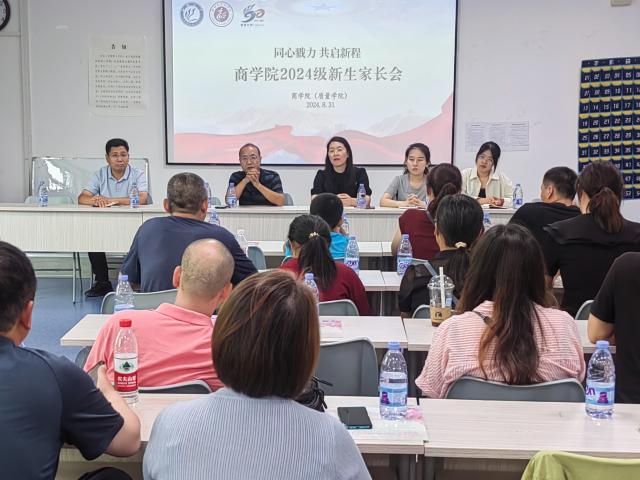 8月31日,商学院(质量学院)2024级新生家长见面会在东校区1#201召开,学院党委副书记、副院长李树房,副院长匡萍,团委书记刘玉华,辅导员韩亭亭、刘聪睿参加座谈会。