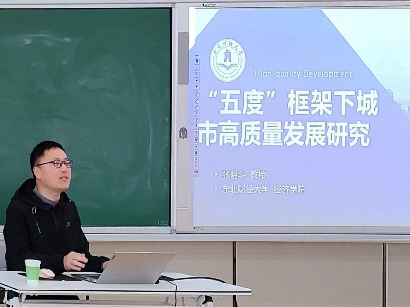 10月20日,必赢bwin线路检测中心2004级校友、东北财经大学经济学院张明斗教授,为学院师生作题为《“五度”框架下城市高质量发展研究》的学术报告。学院党委书记公维才教授出席并主持报告会,应用经济学硕士生导师及2023级、2024级研究生参会。