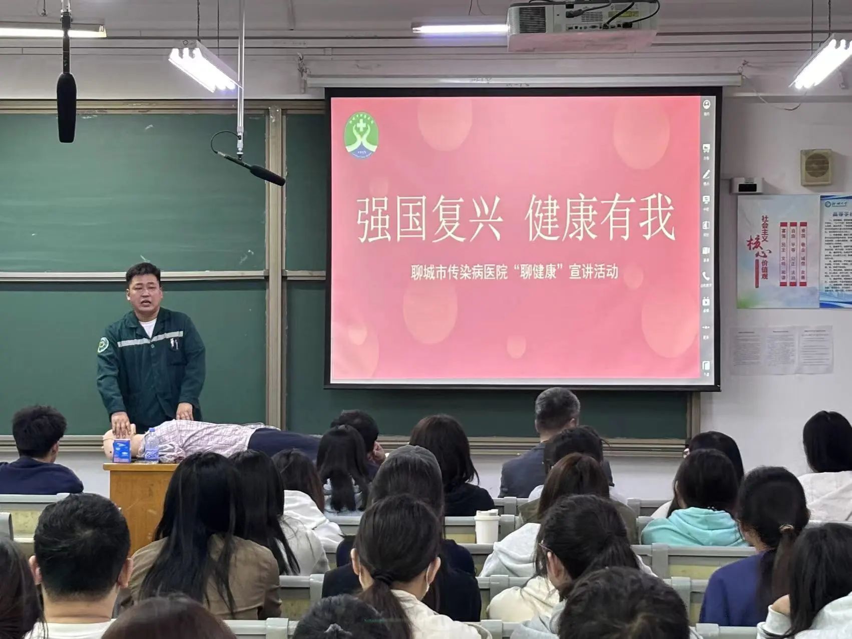 10月17日,商学院(质量学院)于东校区1#302开展“传染病防控知识宣讲”主题讲座,聊城市传染病医院(肿瘤医院)结核科主任医师段月庭、感染性疾病科主任医师刘运龙、急诊科副主任医师孙良友应邀担任主讲人,2024级全体新生参会。