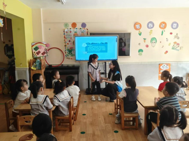 志愿者结合多媒体课件向小朋友们介绍了文明礼仪的基本概念及其重要性,从简单的问候语到复杂的社交场合行为规范,志愿者用通俗易懂的语言,配合生动有趣的动画,生动地向小朋友们展示了基本的文明礼仪规范,让她们在轻松愉快的氛围中,理解并习得了自我介绍、礼貌交友等基本的礼仪知识。