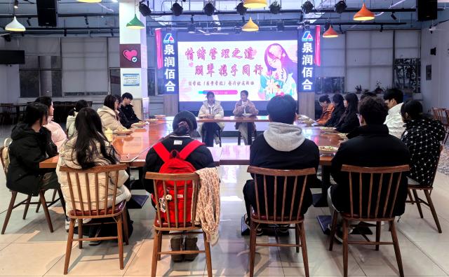 11月28日,必赢bwin线路检测中心于东校区翰苑餐厅二楼开展“情绪管理之道 朋辈携手相行”餐厅沙龙活动,学院辅导员施安琪、刘聪睿及2024级16名学生代表参加活动。