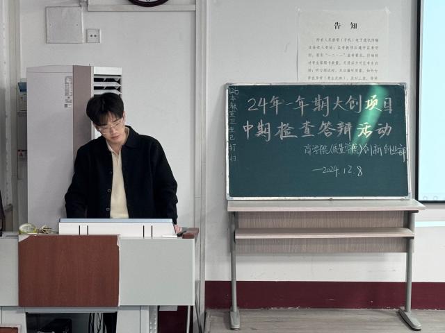 为深入了解学院2024年一年期大创项目推进状况,检验各项目团队取得的阶段性成果,12月8日,商学院(质量学院)在201室组织开展大学生创新创业项目中期检查答辩活动,学院副教授刘琛君、王全美,讲师董慧应邀担任评委,李炜媛、朱恒志、李航等带领十三支队伍参与答辩。