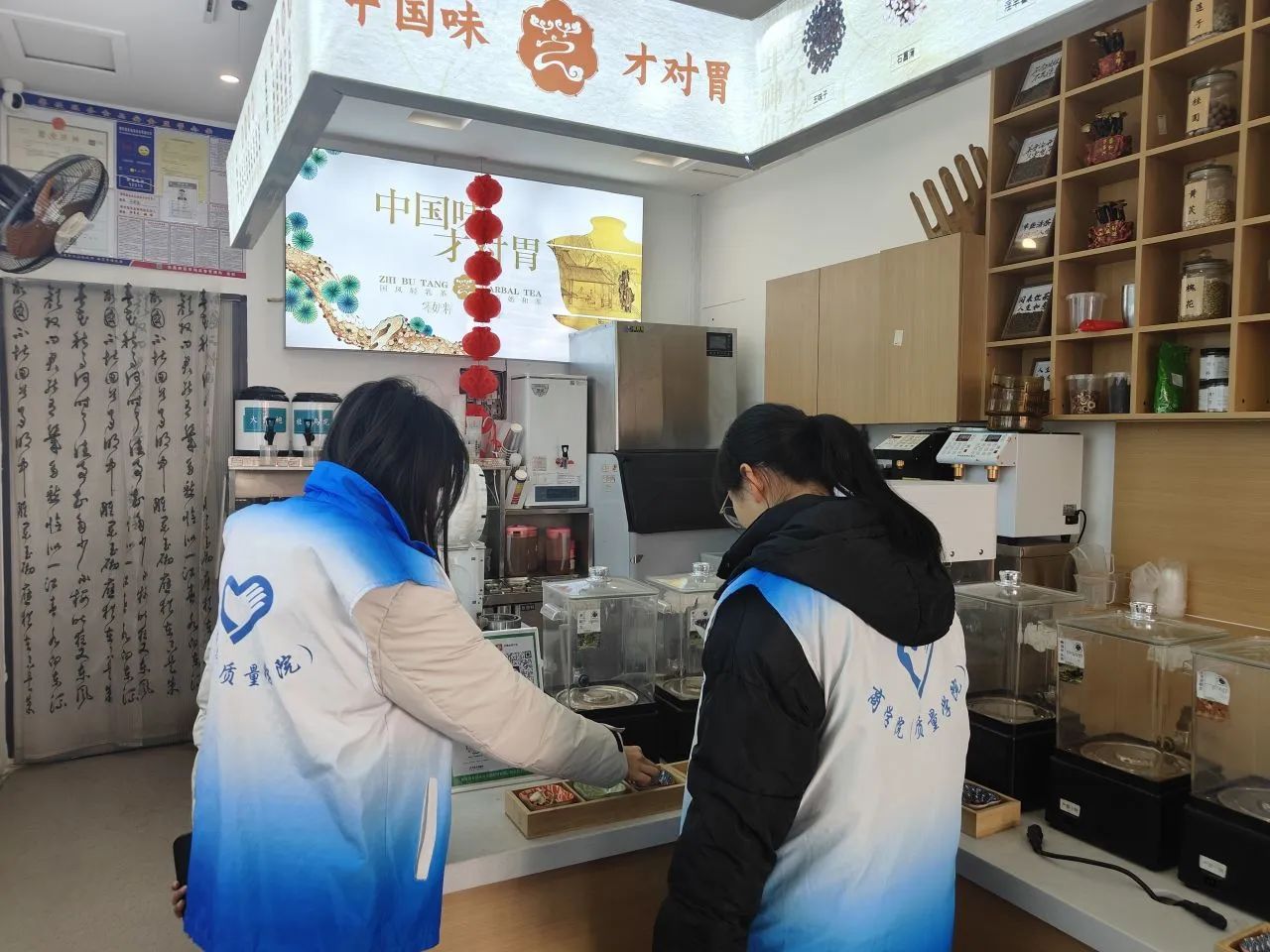 为传承与弘扬中医药文化,推动健康饮食理念普及,1月19日,商学院(质量学院)于聊城市东昌府区芝哺棠中药奶茶店开展“探寻中药奶茶韵 弘扬中医文化情”社会实践活动,2023级9班公一如、黄沛沛等5名志愿者参加。
