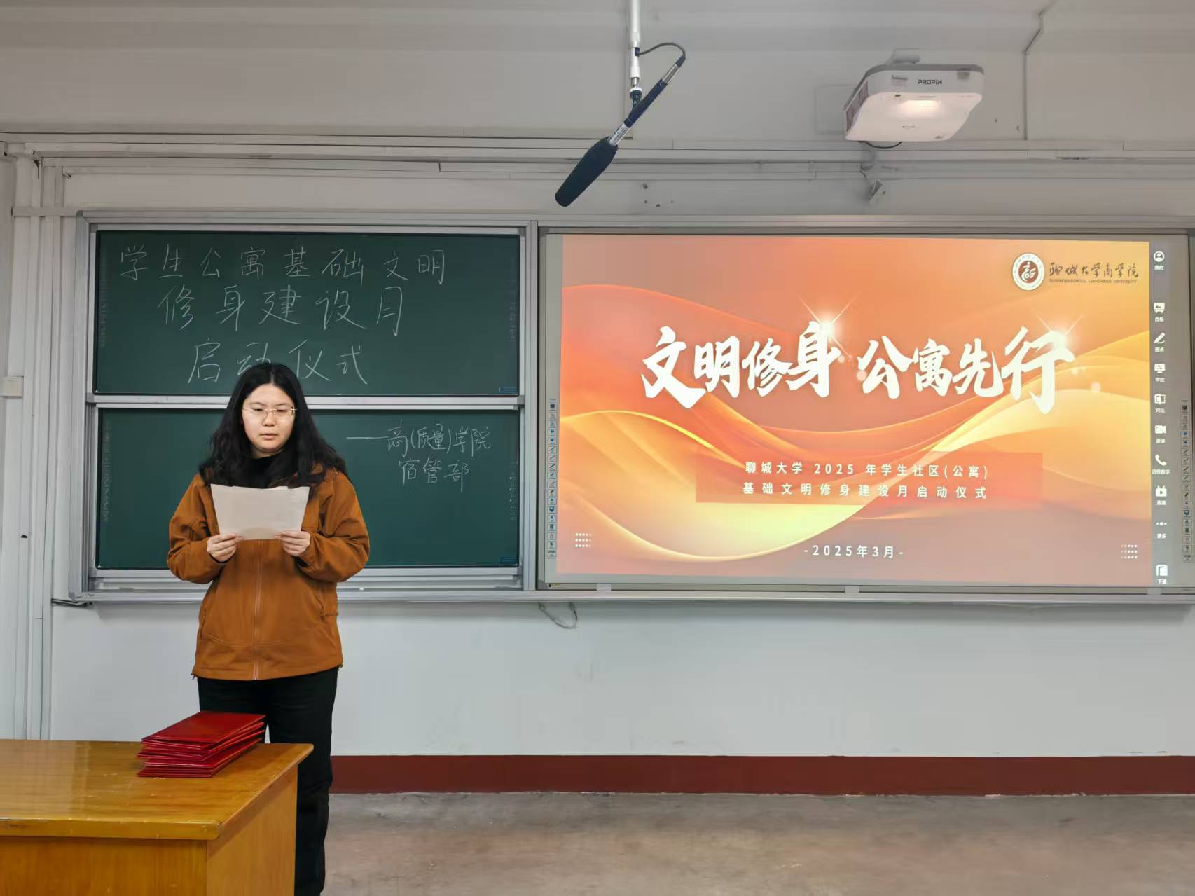 为进一步加强学生公寓基础文明建设,营造整洁、舒适、文明、安全的学习生活环境,3月13日,商学院(质量学院)于301室举办学生公寓基础文明修身建设月启动仪式,学院党委书记公维才,党委副书记、副院长李树房,团委书记刘玉华,辅导员高鹏、刘聪睿参会,仪式由刘玉华主持。