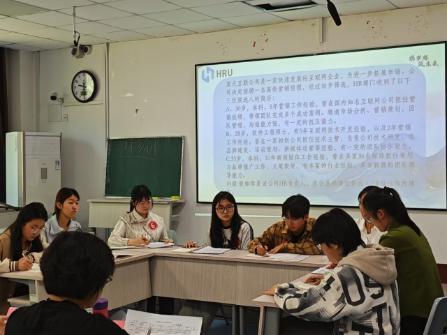 活动伊始,主持人详细介绍了无领导小组讨论的规则和流程,随后将参赛选手组成一个小组,小组拿到案例题目后,迅速进入紧张的准备阶段。在规定时间内,选手们认真阅读材料,积极思考,梳理思路。