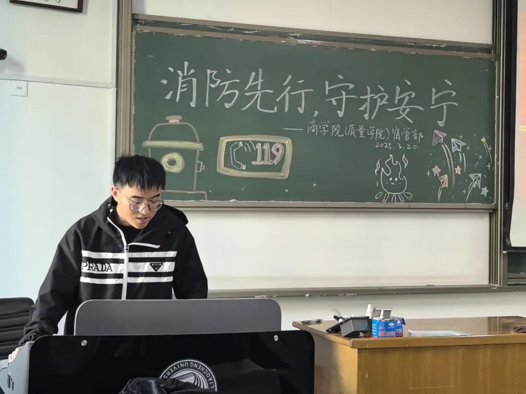 为筑牢校园安全防线,强化师生消防安全意识,3月20日,商学院(质量学院)以2025年春季全国高校消防安全公开课为契机,在301室举办消防演练活动,学院学生会宿管部干事牛安毅担任主讲人,2023级、2024级学生代表参加活动。