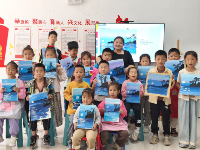 活动以破冰游戏拉开序幕,志愿者通过幽默互动迅速消除了孩子们的拘谨。绘画环节中,孩子们在志愿者引导下临窗观景,将自然印象转化为缤纷画卷,童趣笔触间跃动着独特的艺术想象,孩子们骄傲展示画作,畅谈合作心得。随后开展的非洲鼓教学别具生趣,志愿者示范基础节奏后,孩子们通过拍手、跺脚感知韵律,最终完成充满活力的集体合奏。“卷白菜”团队游戏将现场气氛推向高潮,孩子们手拉手传递呼啦圈,从最初的手忙脚乱到逐渐摸索出协作窍门。