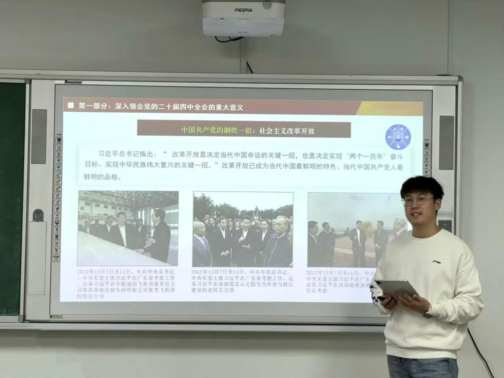 为深入学习贯彻党的二十届四中全会精神,11月23日,商学院(质量学院)于712室召开党的二十届四中全会理论学习会,研究生会秘书处工作人员刘建昊担任主讲人,学院2024级、2025级全体研究生参会。